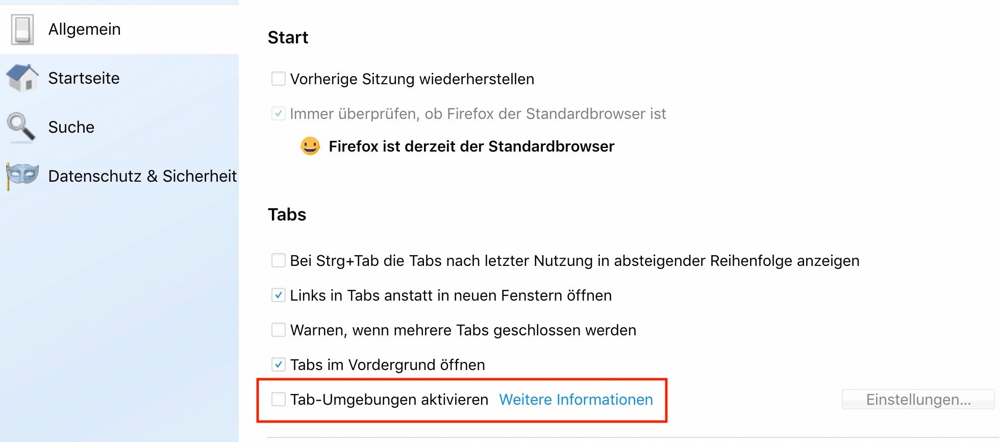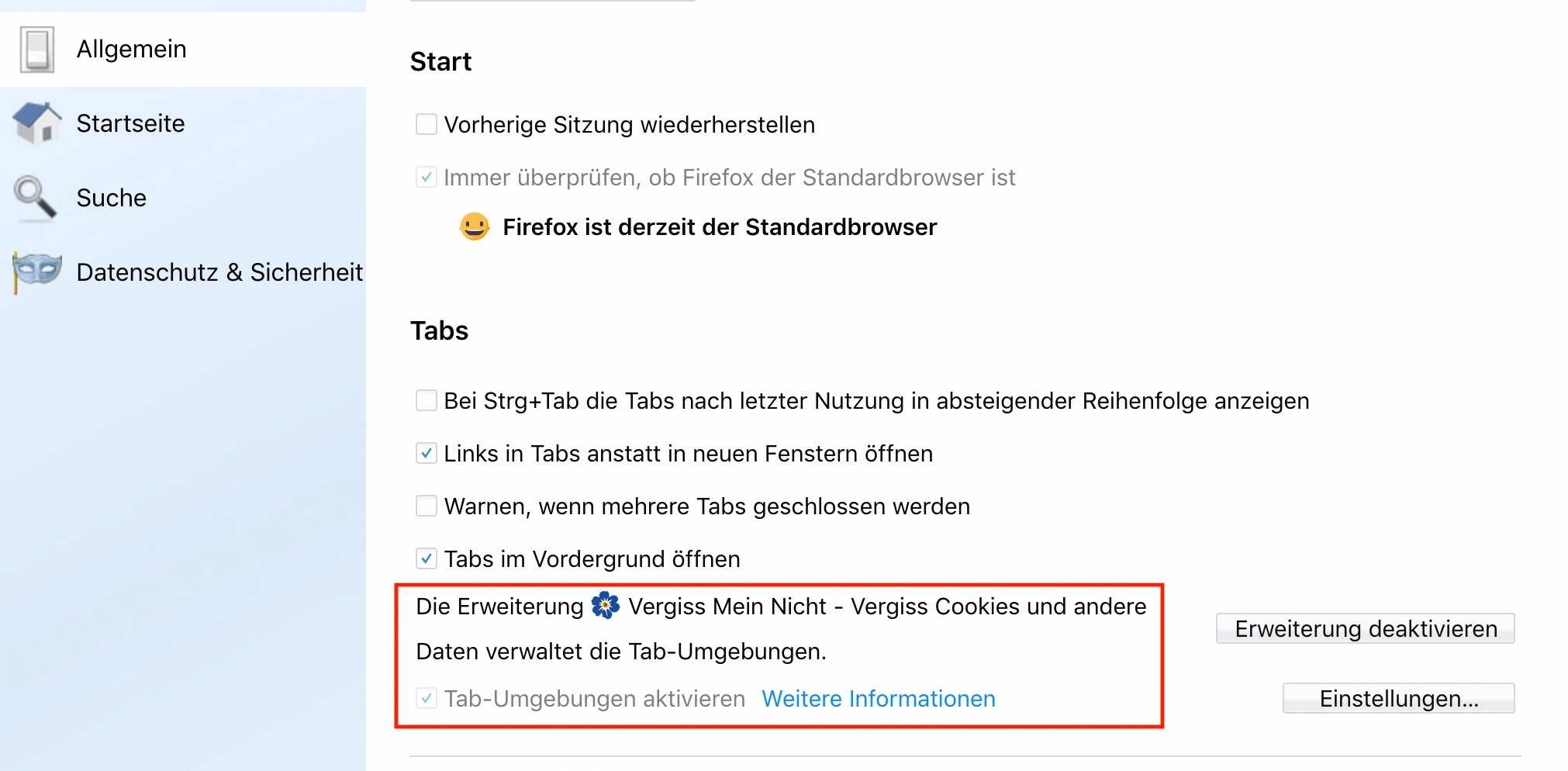 "Forget Me Not"/"Vergiss Mein Nicht" aktiviert Tab-Umgebungen?