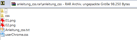 Zitat01. kopiere "userChrome.css" in dein "Profilordner\chrome" vom Firefox.
