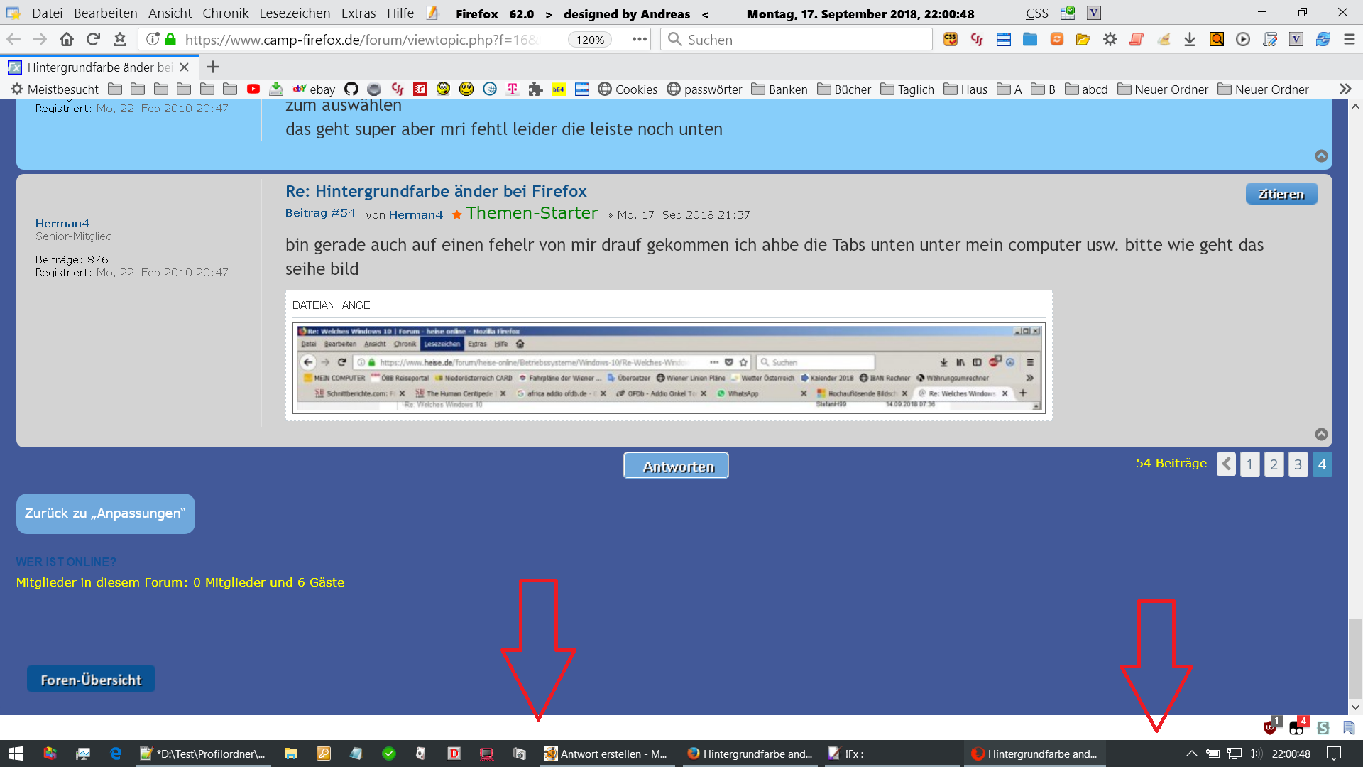 und dann wollte ich dich noch bitten ob du mir helfen kannst unten am Ende vom Firefox den Rand - siehe Bild