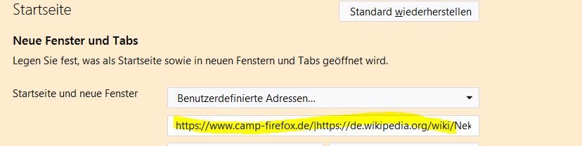 Abgesehen davon dass es mit der Firefox-Einstellung für die Startseite geht