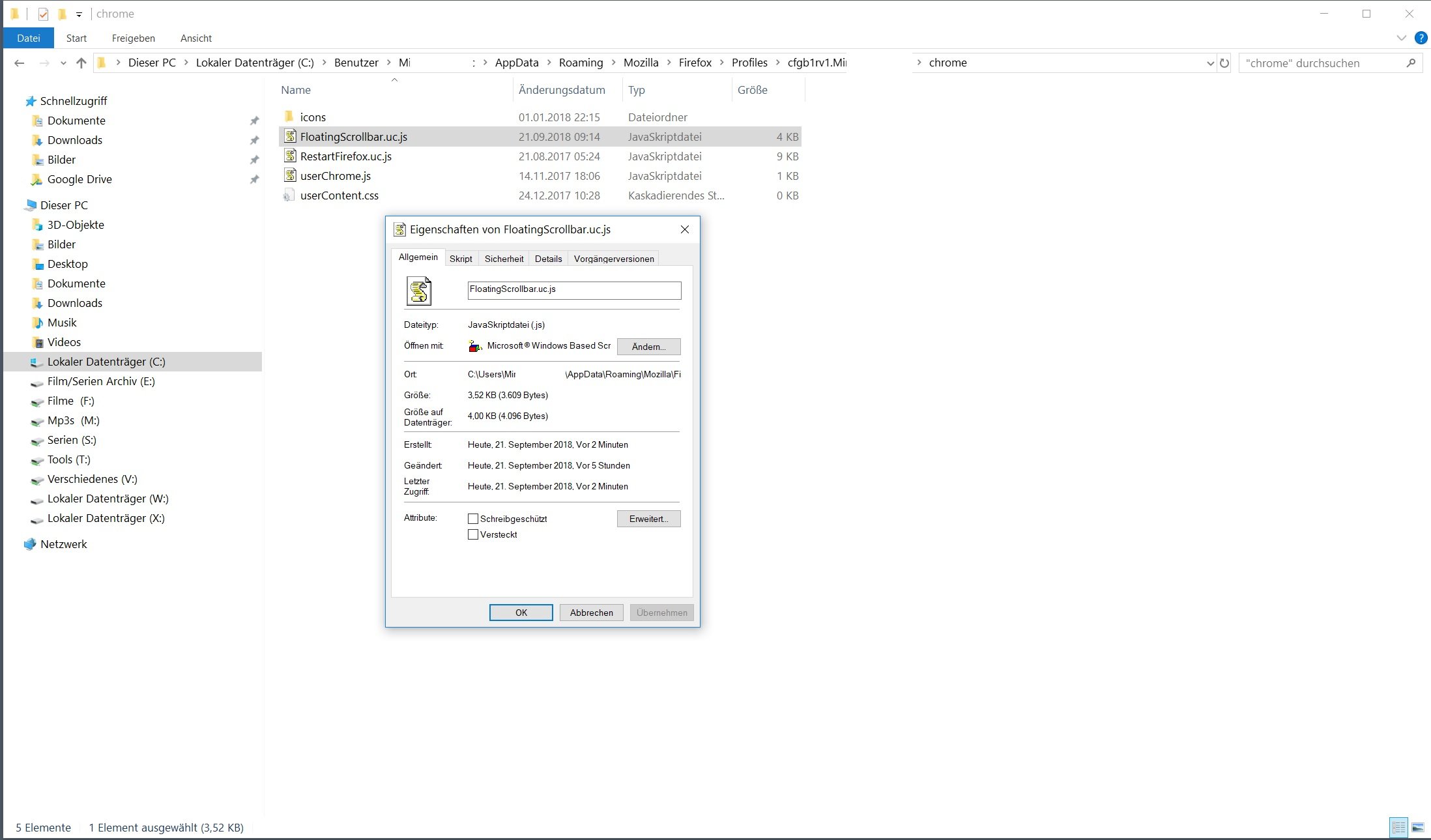 --> Screenshot des Ordners /chrome mit den Eigenschaften der Datei FloatingScrollbar.uc.js