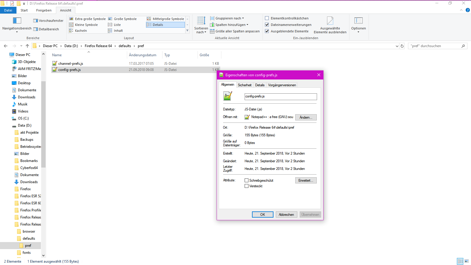 --> Screenshot des Ordners /defaults/pref des Programmordners mit den Eigenschaften der Datei config-pref.js (so wie beispielhaft in meinem angehängtem Bild dargestellt)