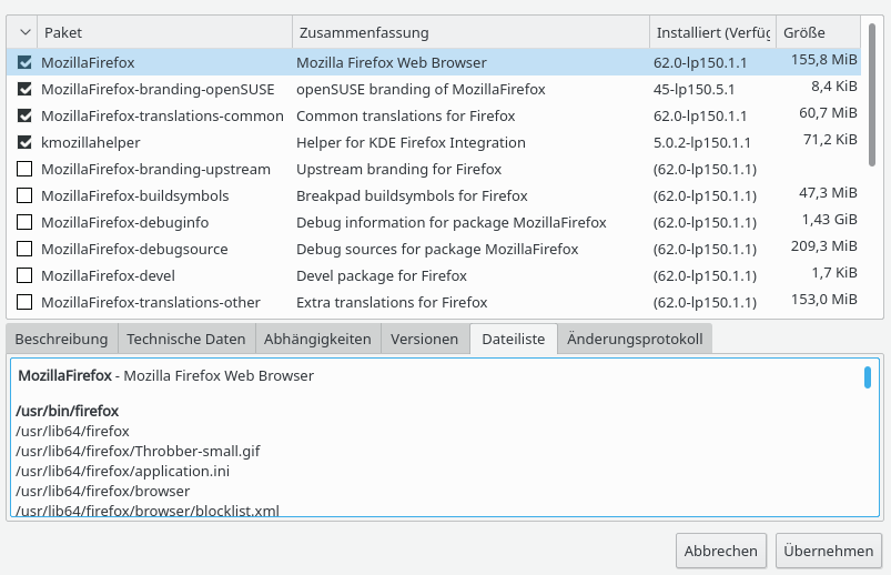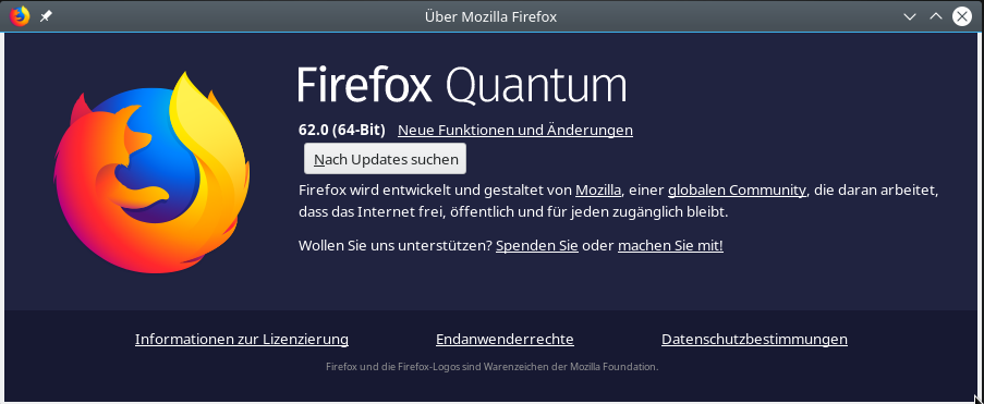 In dem openSUSE Community-Repository Mozilla-Repository ist Stand heute die aktuellste 62er-Version des Firefox Stand 62.0:
