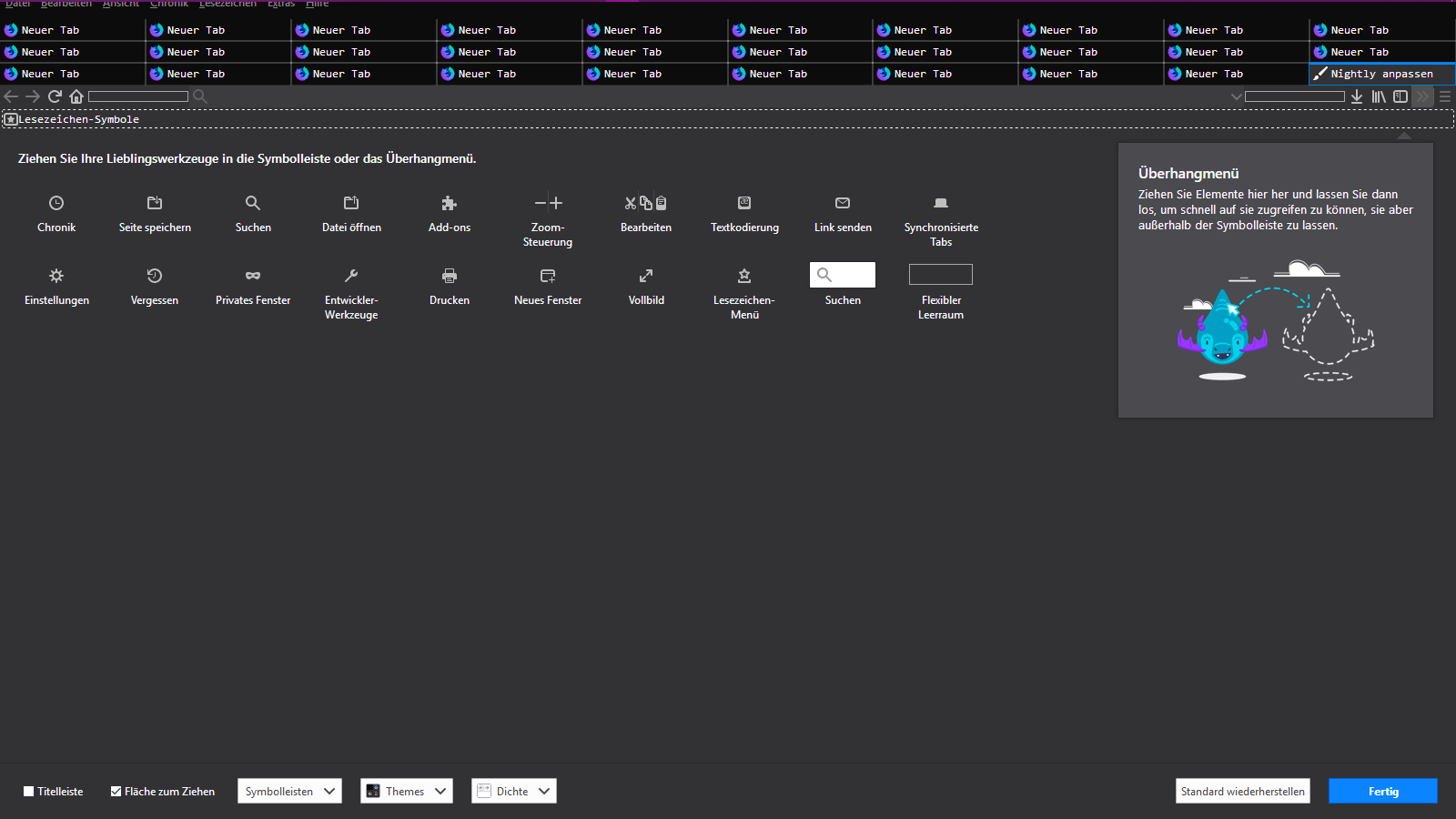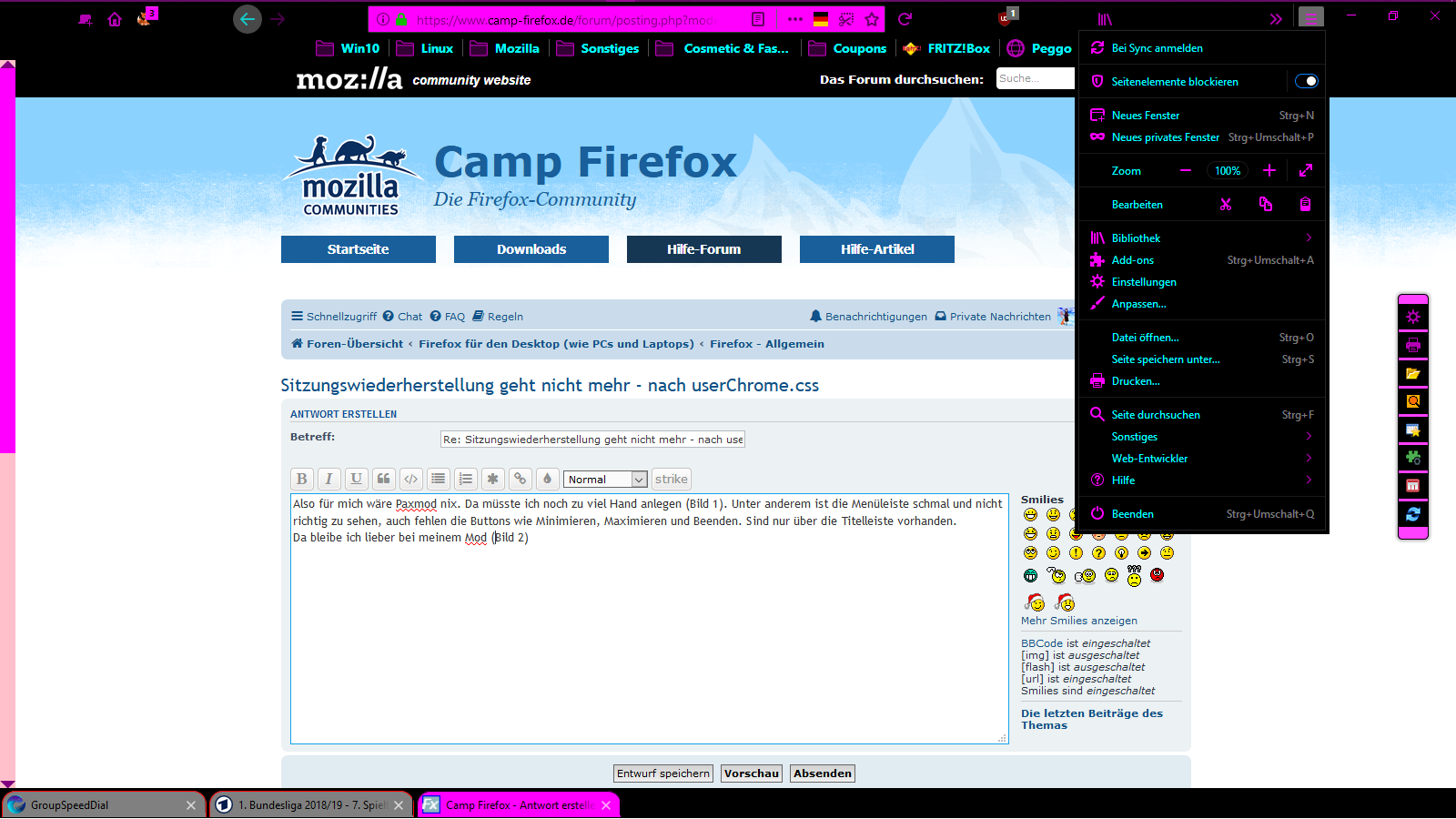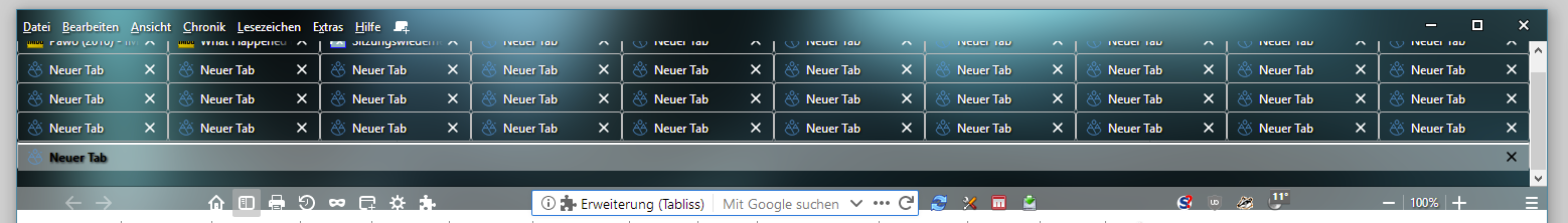 Ich weiß nicht, ob beides zusammenhängt aber nachdem ich die userChrome.css angelegt hab, um zweireihige Tabs