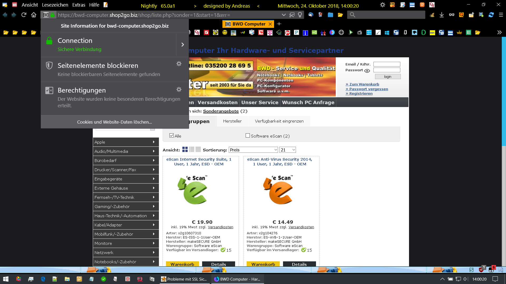 Die angefügten Screenshots zeigen das Problem. Die Seite mit dem Problem lautet: https://bwd-computer.shop2go.biz