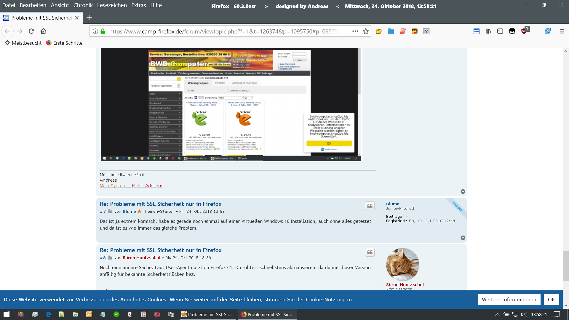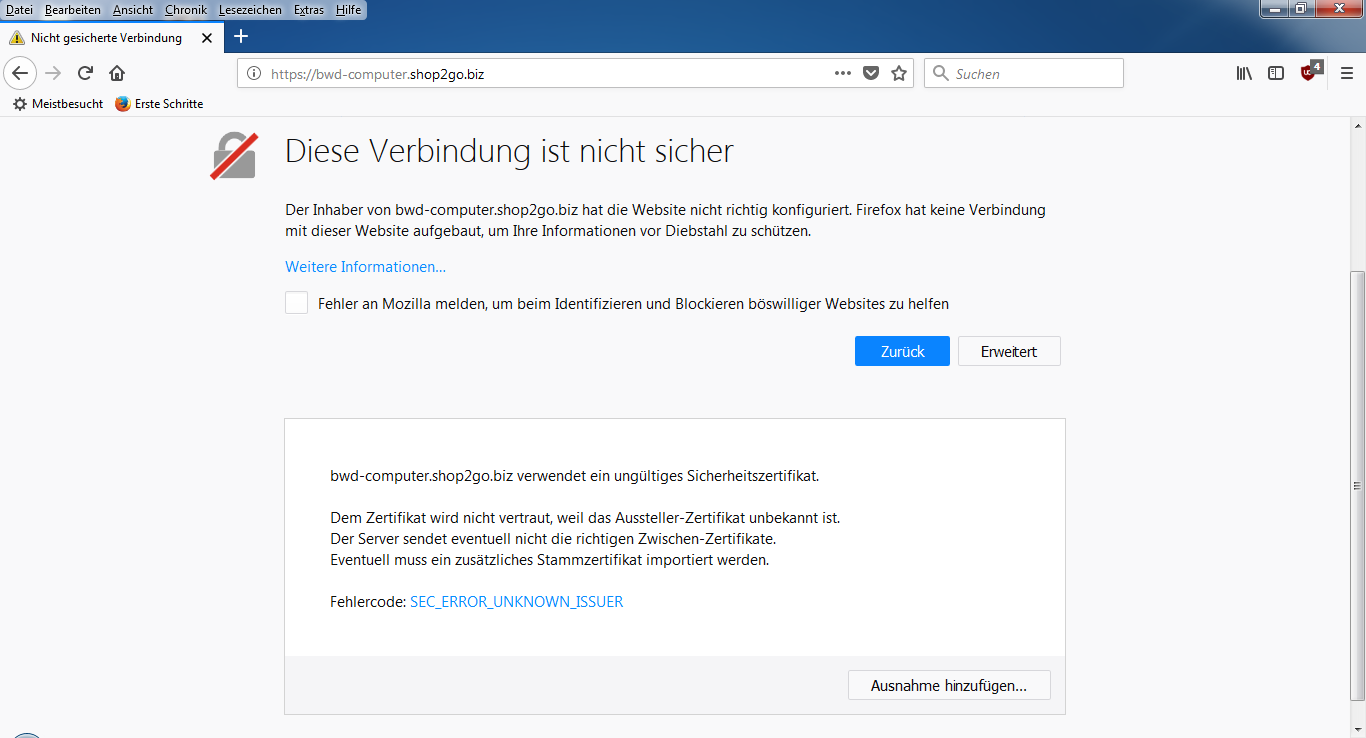 ich habe in der aktuellen Version vom Firefox 60esr das Problem, dass mein Shop permanent als unsicher eingestuft wird. In Chrome und IE11 gibt es diese Fehlermeldungen nicht. Da viele meiner Kunden mich bereits auf das Problem aufmerksam gemacht haben und nicht bestellen konnten ist das natürlich ein riesiges Problem welches zu Kundenverlust führen kann und wird. Ich kann ja von unsicheren Kunden nicht verlangen, dass diese eine Sicherheits Ausnahme hinzufügen.