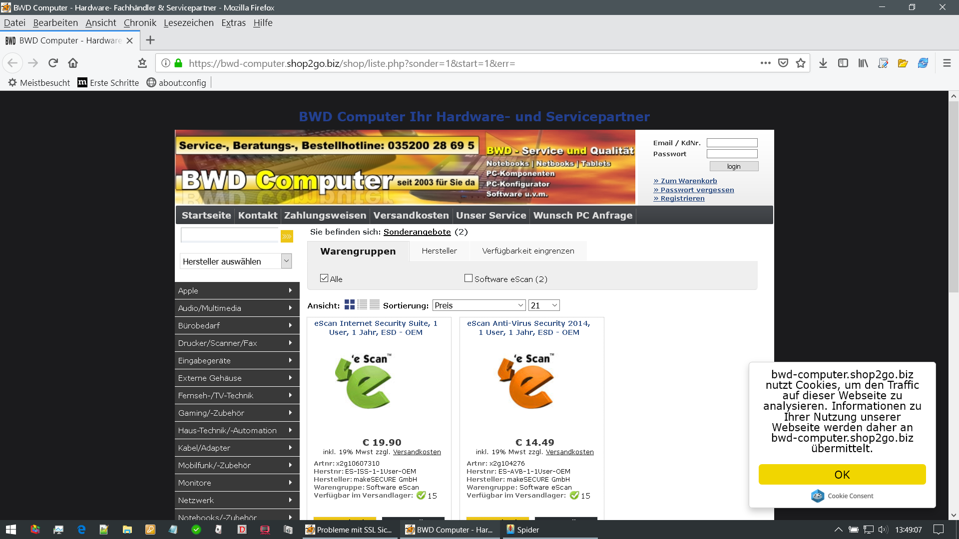 Die angefügten Screenshots zeigen das Problem. Die Seite mit dem Problem lautet: https://bwd-computer.shop2go.biz
