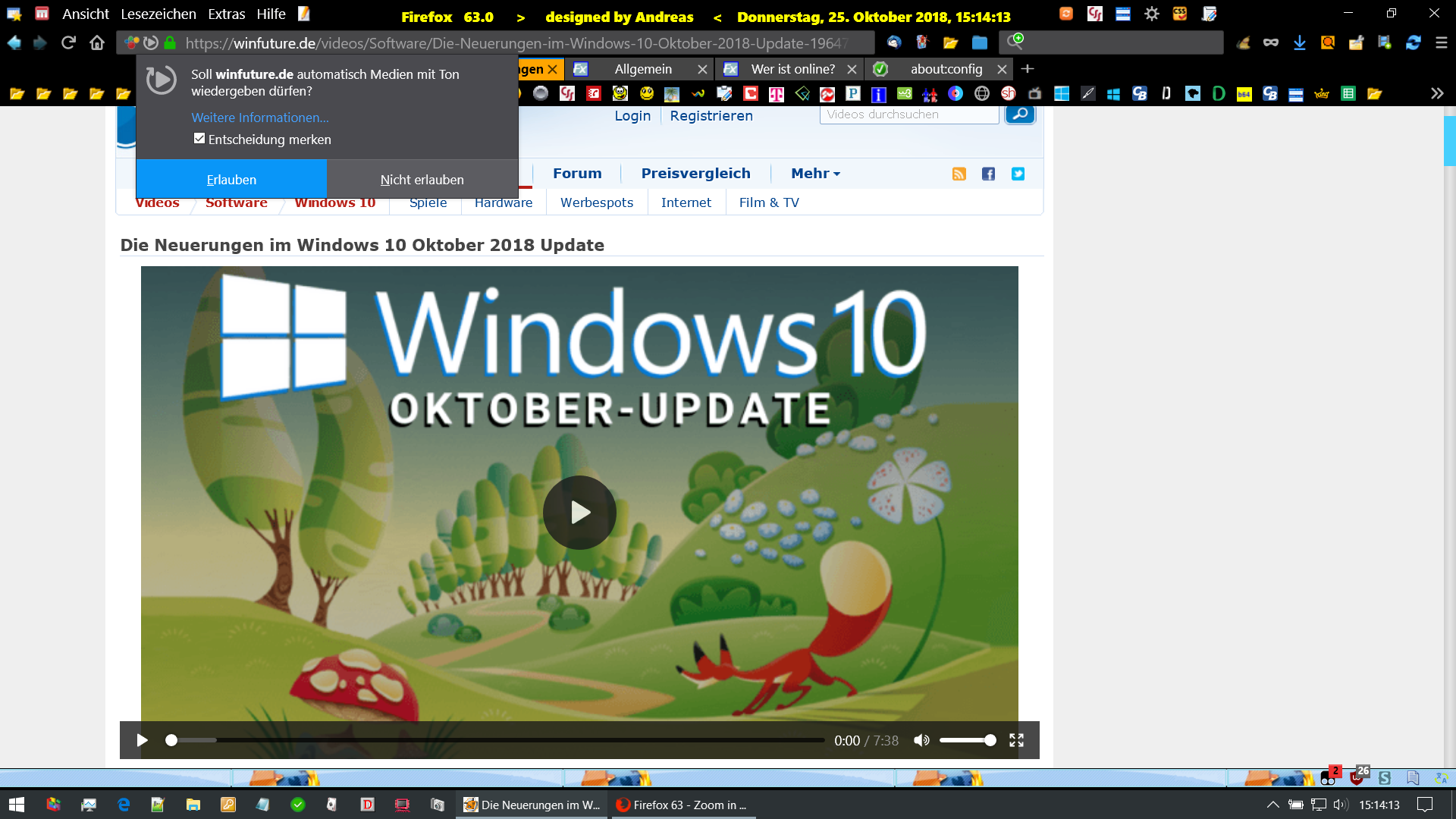In Version 63.0 sind einige neue Einstellungsmöglichkeiten hinzugekommen, und jetzt starten YouTube-Videos oder Videos in Nachrichtenportalen bei mir wieder von selbst.