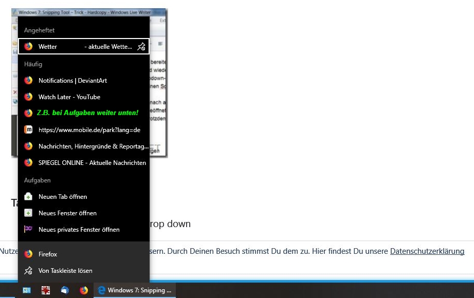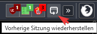Ich nutze diese Funktion ja nun sehr gerne. Als ich letztens mal wieder mit Rechtsklick auf den Firefox-Shortcut in der Win10-Taskleiste gegangen bin (>>> neuen TAB öffnen, dann Sitzung wieder herstellen), habe ich mich gefragt, ob man den Button nicht auch gleich hier mit einfügen kann.