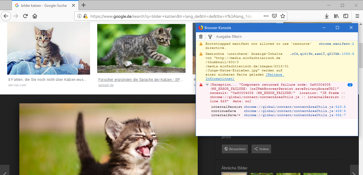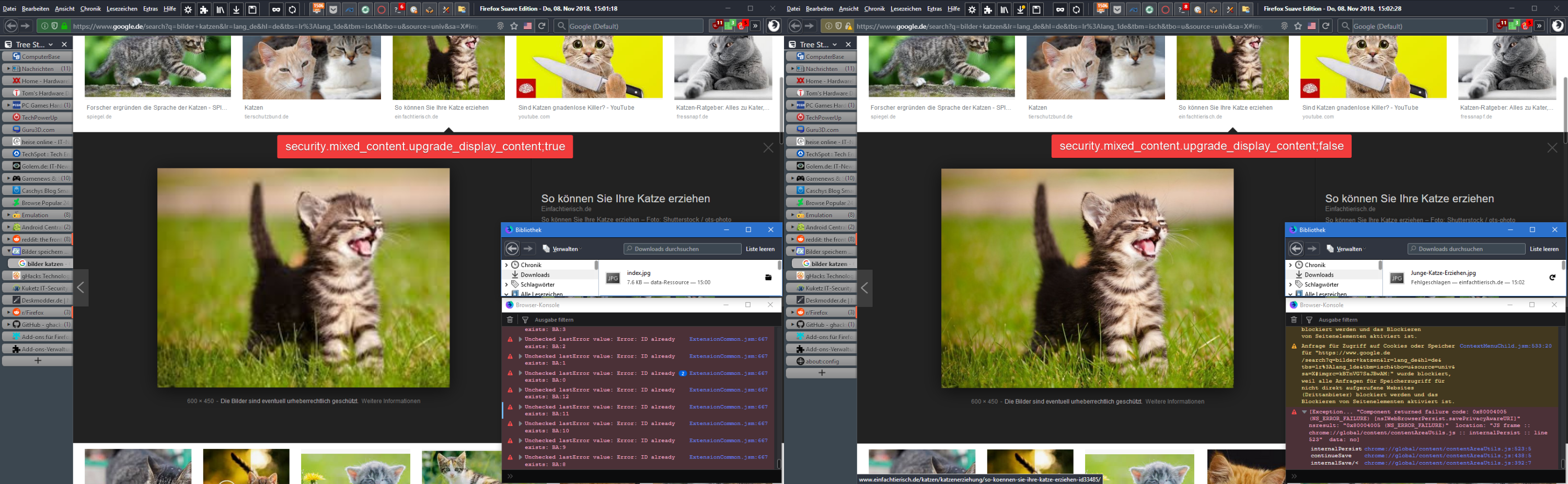 In meinem Hauptprofil war nämlich unter about:config der Wert security.mixed_content.upgrade_display_content auf true gesetzt. Sobald der Wert wieder auf den Standardwert false gesetzt wird, taucht wieder der von Andreas beschriebene Fehler auf -> siehe auch Screenshot. [attachment=0]firefox_hauptprofil.png[/attachment]