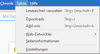 "Lesezeichen verwalten" soll in den Menüpunkt "Extras".
