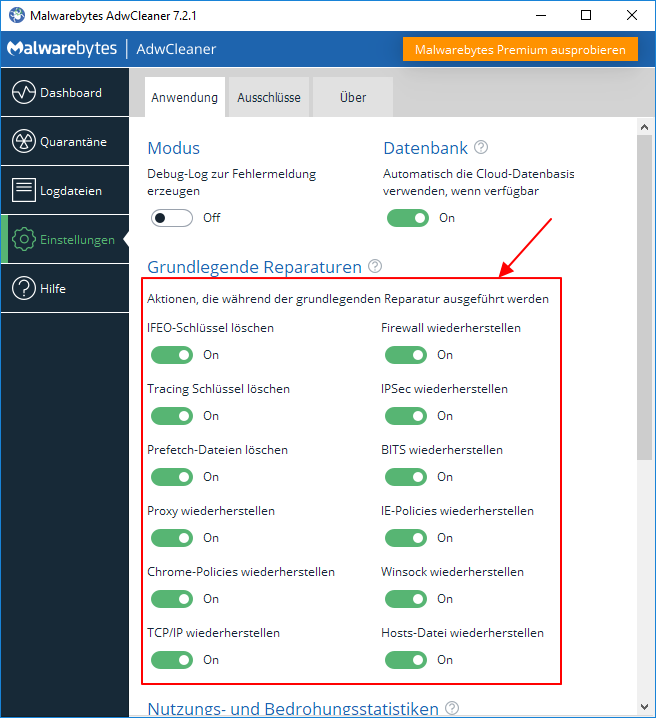 • Hattest du denn den AdwCleaner wie im Bild eingestellt?