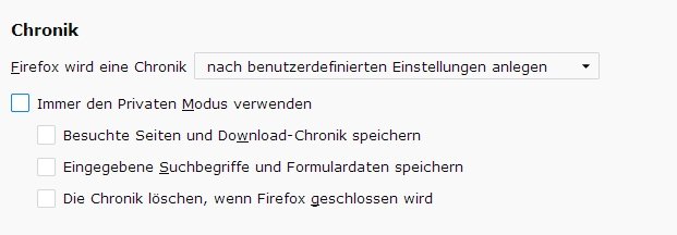 Firefox wird eine Chronik "nach benutzerdefinierten Einstellung anlegen"