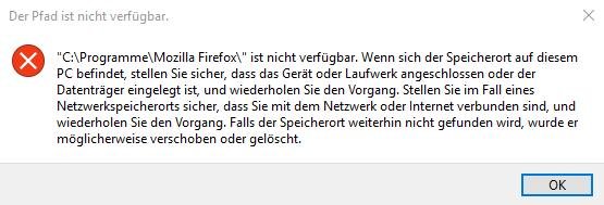 offenbar hast Du den Fx nicht im Standardpfad (%programfiles%) installiert (warum eigentlich?). Du musst hier natürlich den Pfad angeben, in dem Deine firefox.exe liegt.