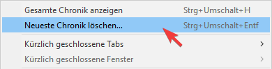 Ist bei dir dort der Menüpunkt für "Neueste Chronik löschen" auch nicht vorhanden?