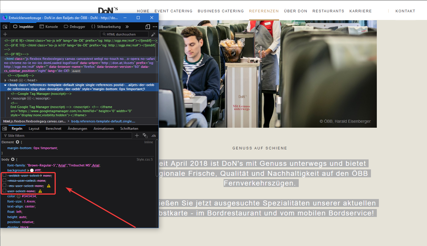 Gut scheinbar gehts teilweise doch nur muss Ich mehr Kopieren.Code<p>Seit April 2018 ist DoN's mit Genuss unterwegs und bietet regionale Frische, Qualität und Nachhaltigkeit auf den ÖBB Fernverkehrszügen. <br> <br> Genießen Sie jetzt ausgesuchte Spezialitäten unserer aktuellen Herbstkarte - im Bordrestaurant und vom mobilen Bordservice! </p>Direkt den Text geht nicht im Web Developer. :-??