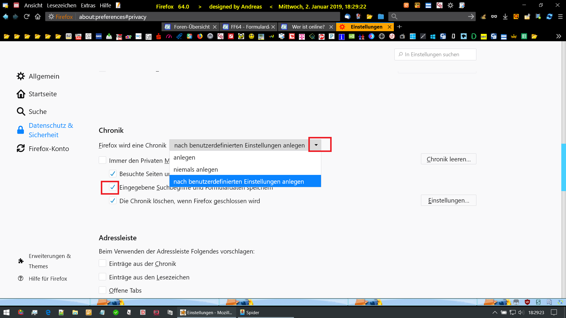 In den Einstellungen die benutzerdefiniert Einstellung bezüglich der Chronik aktivieren, und dann den Haken entfernen.