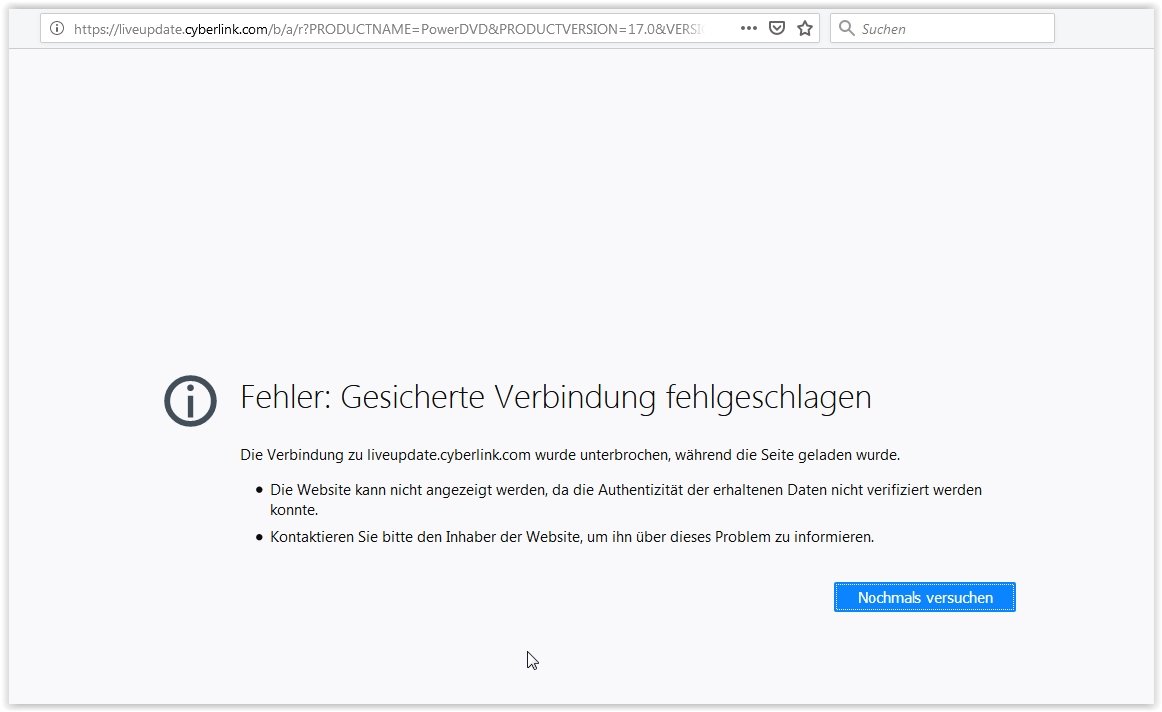 Es werden diverse Seiten nicht mehr geladen mit dem Hinweis auf fehlerhaftes Sicherheitszertifikat - z.B. ganz "renommierte'" Seiten wie die Update-Seite von Power-DVD.