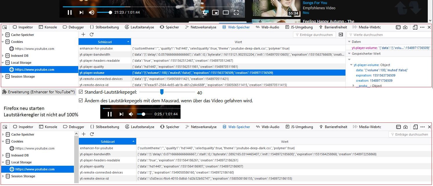 Web-Speicher [Local Storage] Schlüssel yt-player-volume erhalte ich nur, wenn ich den Regler verschiebe.