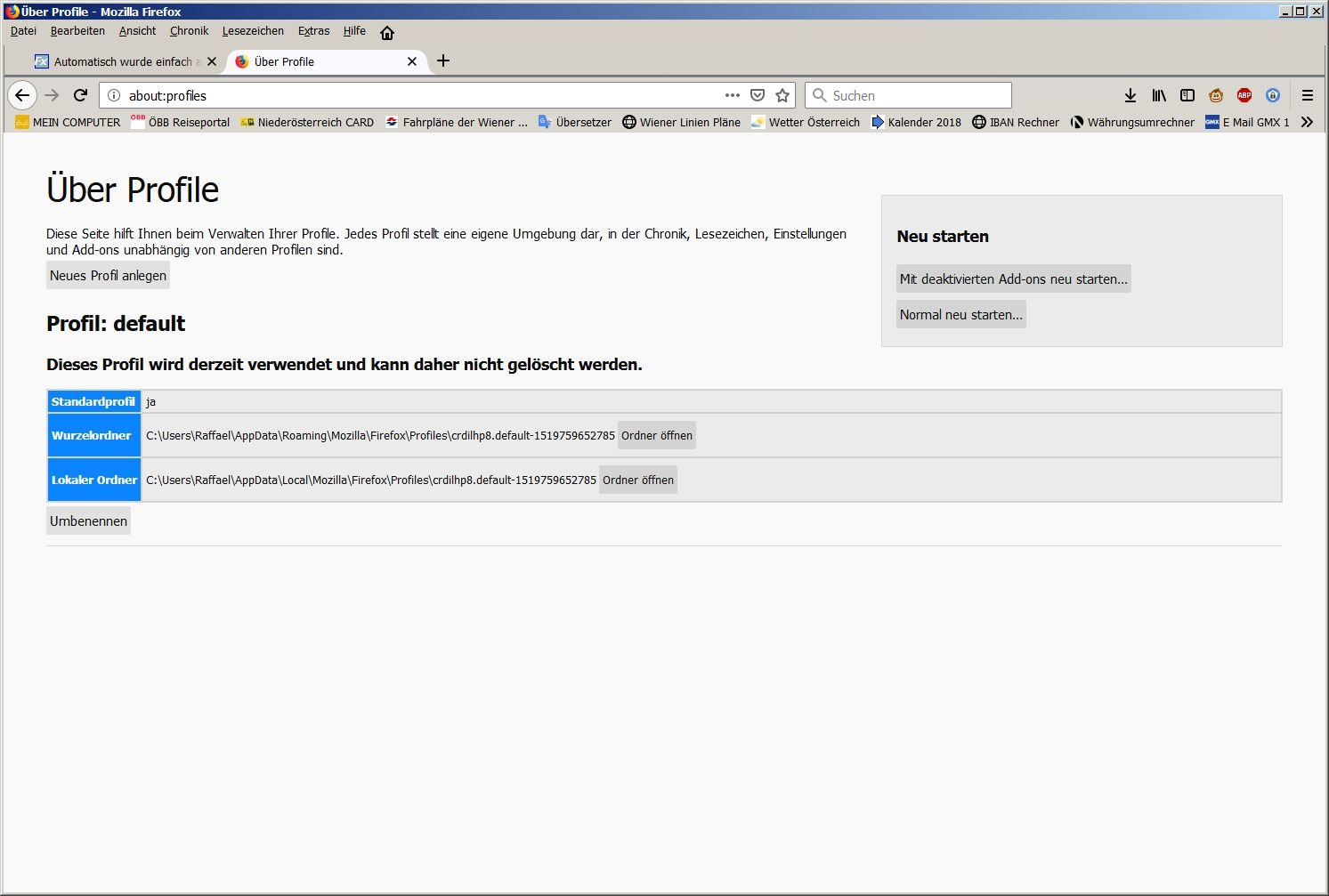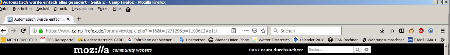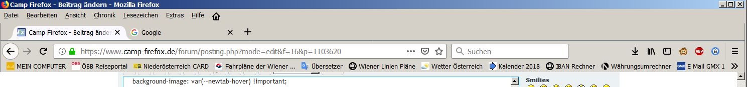 • Wenn du möchtest, dann kopiere dir hier meine "userChrome.css" vollständig als Ersatz in deinen chrome Ordner. Dann hast du auch wieder die Ordner der Lesezeichen in Gelb. Das sieht dann so aus: