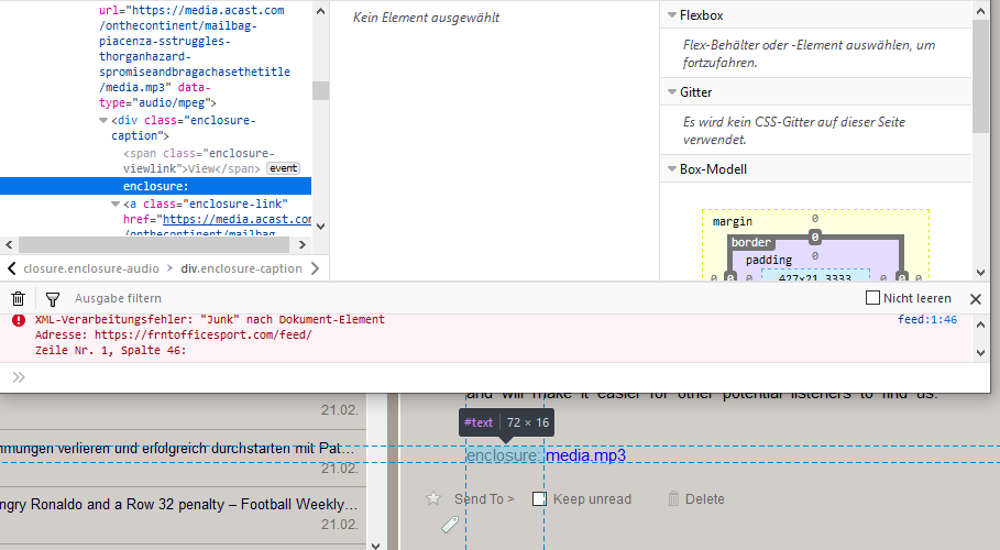 Wenn es geklappt haben sollte, sollte jetzt der Textteil "enclosure:" in der Feedansicht verschwunden sein (siehe auch Screenshot)