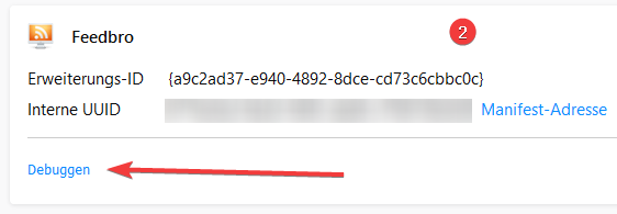 Bei diesem CSS-Code müsstest du noch "Interne-UUID-von-Feedbro" mit deiner Internen UUID von Feedbro ersetzen, da ja diese bei jeder Firefox-Installation einzigartig ist. Die jeweilige Interne UUID von Feedbro kannst du dabei unter about:debugging (in Adresszeile eingeben) nachsehen.