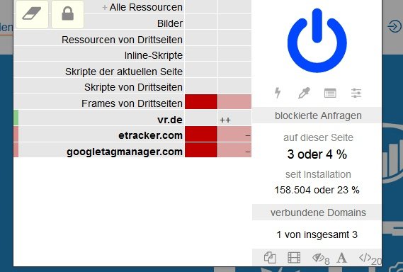Ich habe in der jüngeren Vergangenheit eine Besonderheit beim blocken von Skripten in uBlock beobachtet auf die ich mir so recht keinen Reim machen kann. Aktuell wieder bei der Volks- und Raiffeisenbank vr.de