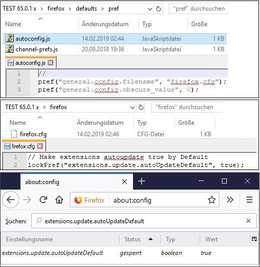 Firefox in einem Unternehmen nutzen - Mozilla | MDN lockPref wird genutzt um Einstellungen zu blockieren, sodass sie nicht mehr vom Nutzer umgestellt werden können, weder über die Einstellungen, noch über about:config.