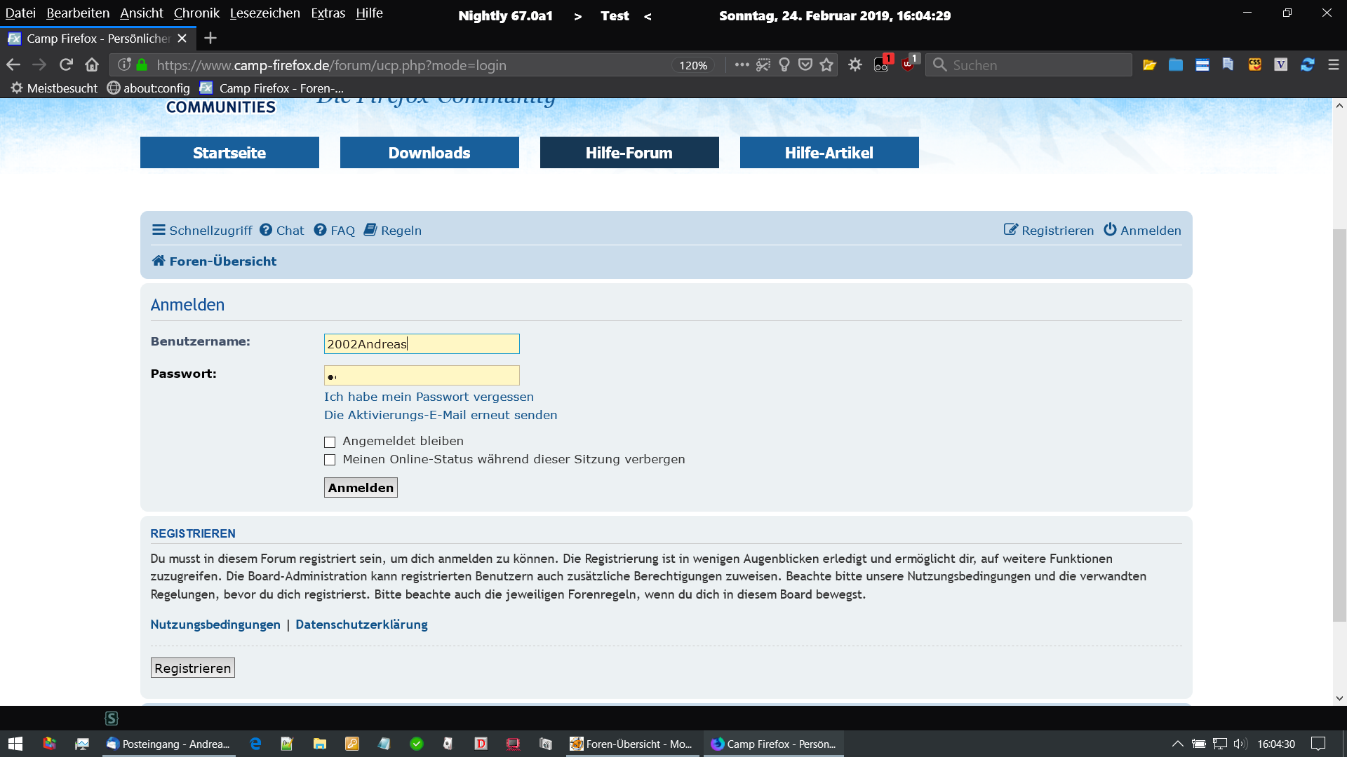 Hallo Andreas, ich habe im FF im Datenschutz Zugangsdaten und Passwörter speichern angehakt.