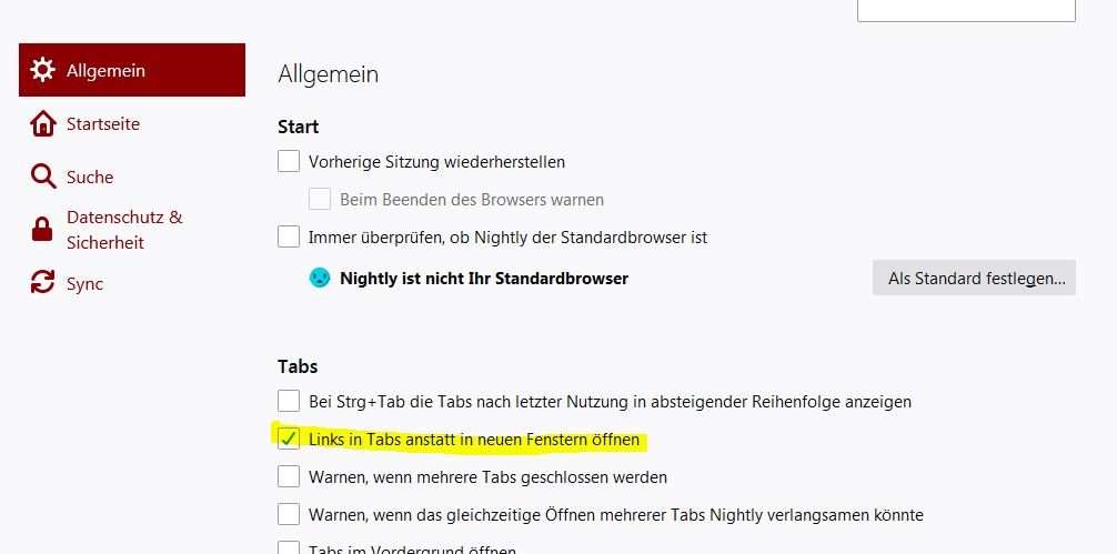 Die Einstellung im Firefox hast du sicher gefunden und entsprechend eingestellt?