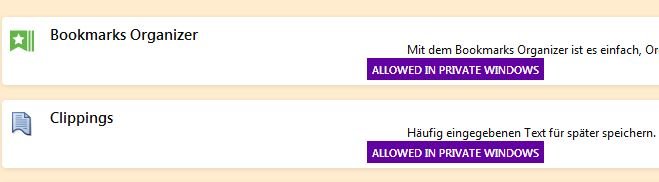 Seit kurzem wird im Nightly im Addons-Manager der Hinweis "Allowed in Private Windows", gezeigt, die mir meinen CSS-Code verhagelt.