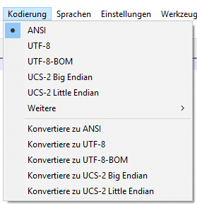 [attachment=1]Notepad-6.2.png[/attachment]In Version 7.6.4 (und auch früher) heißt der Punkt jetzt UTF-8-BOM