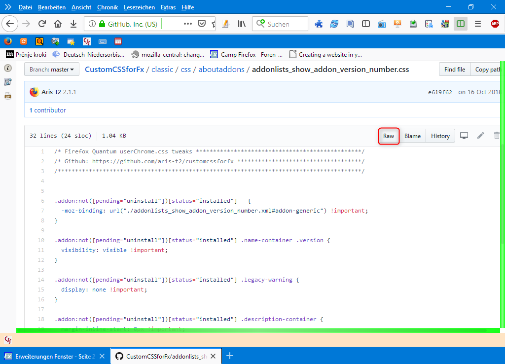 https://github.com/Aris-t2/Custom…css/aboutaddonsCSS Datei geladen werden und die dazugehörende xml Datei.