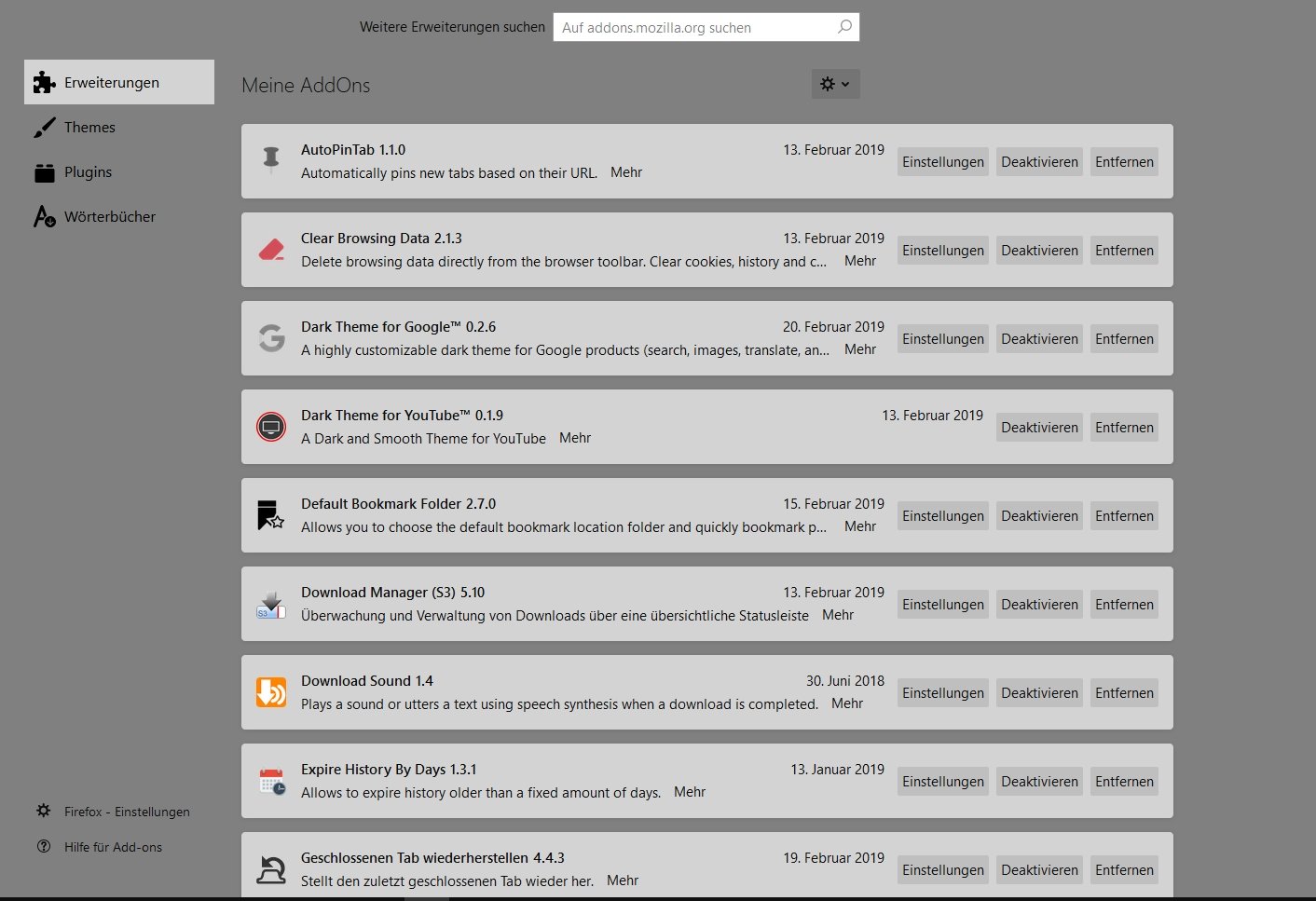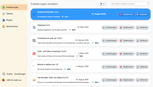 Wenn Du Erweiterung deaktivierst, erscheint auch ein Punkt Disabled