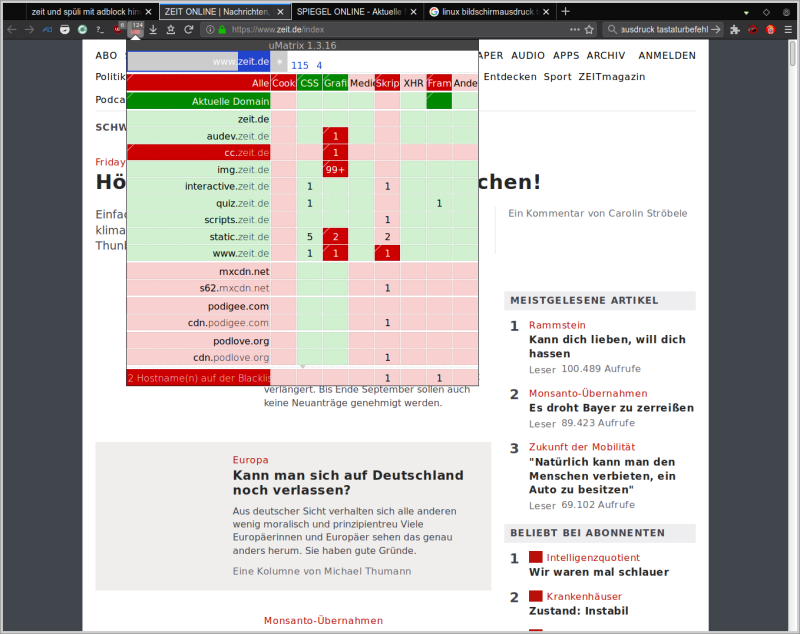 zeit und spüli mit adblock hinweis