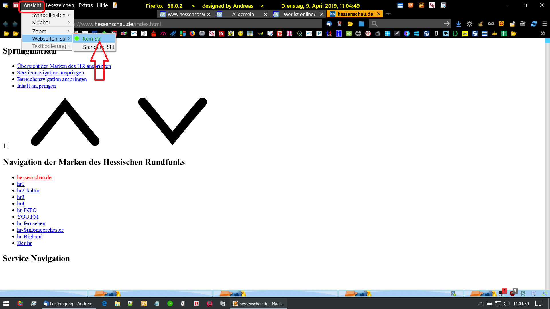 Nach FF-Neustart und erstem Aufruf oder Reload wird die Webseite so dargestellt: