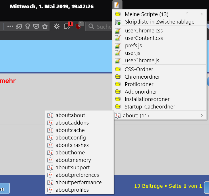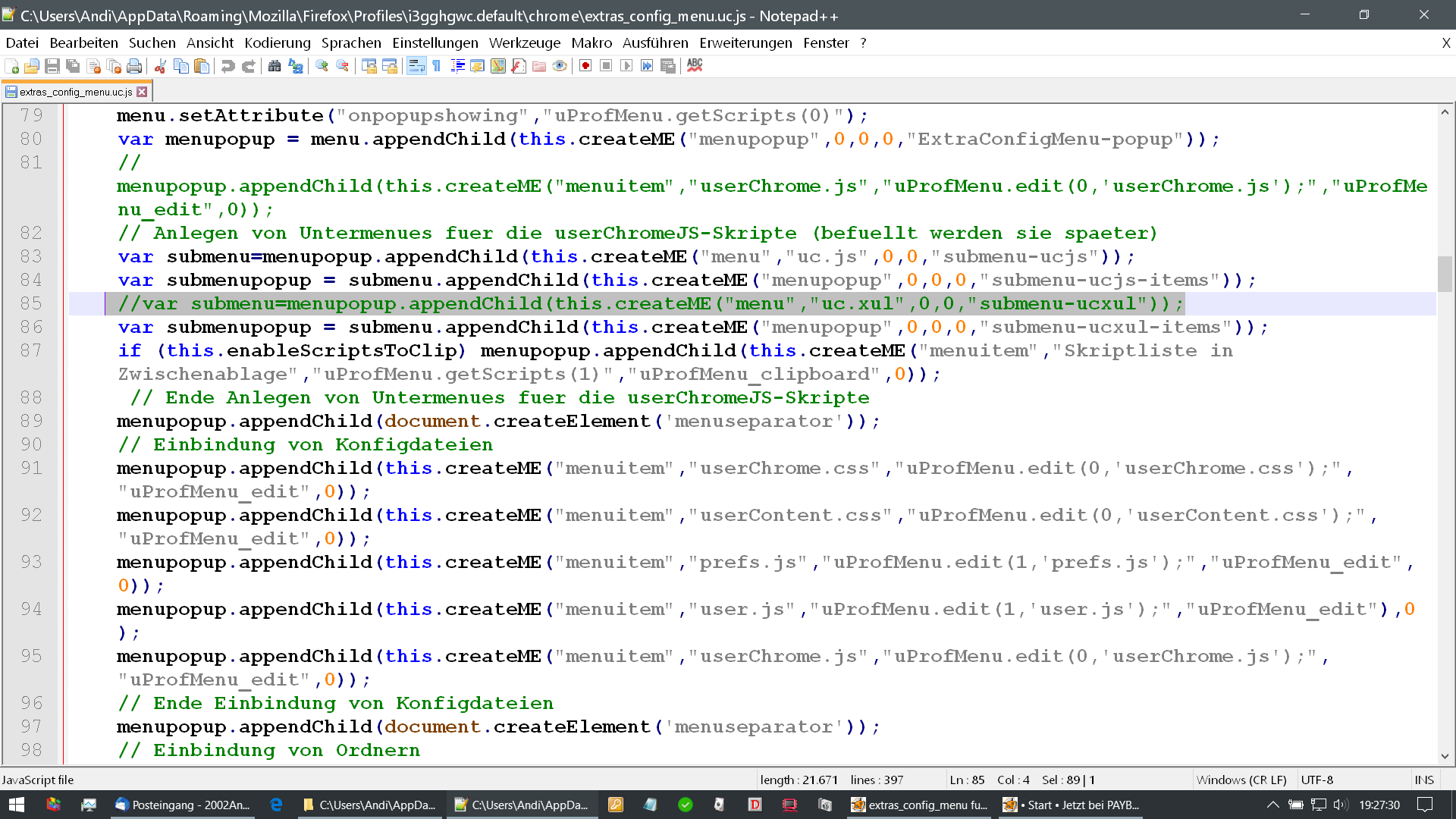 Auch werden die ersten beiden Zeilen (uc.js & uc.xul) im "extras_config_menu.uc.js" nicht mehr angezeigt.