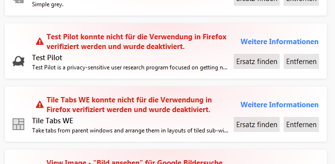 Das betrifft alle Add-ons, de hier als nicht aktiv stehen: