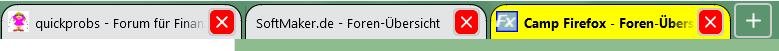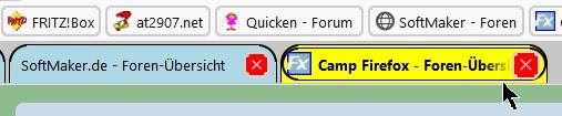 auf dem PC habe ich meine Tabsleiste unterhalb der Lesezeichenmenüleiste. Ausserdem die Tabs rund und farbig.
