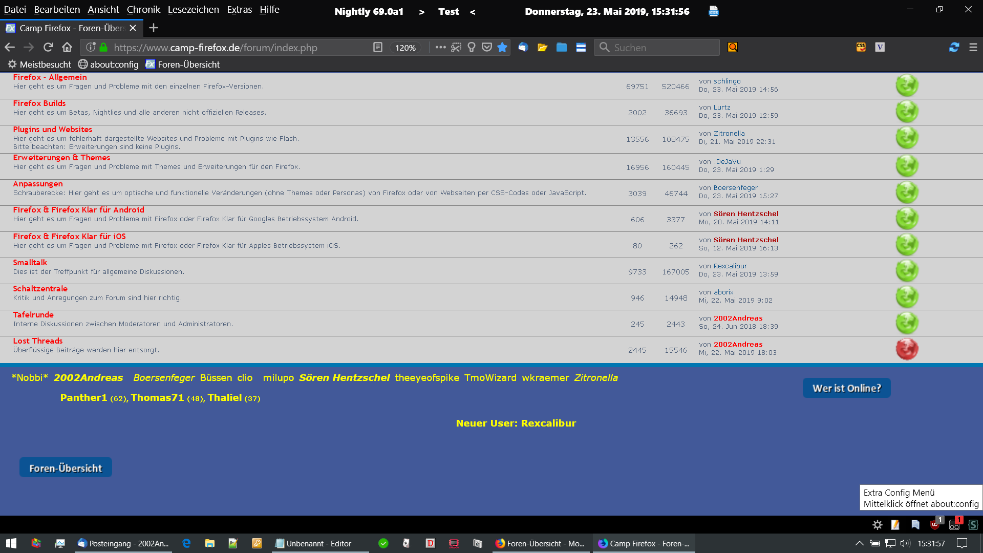 • Erfreulich: ExtraConfigMenu.uc.js ist GELÖST... Danke Andreas...