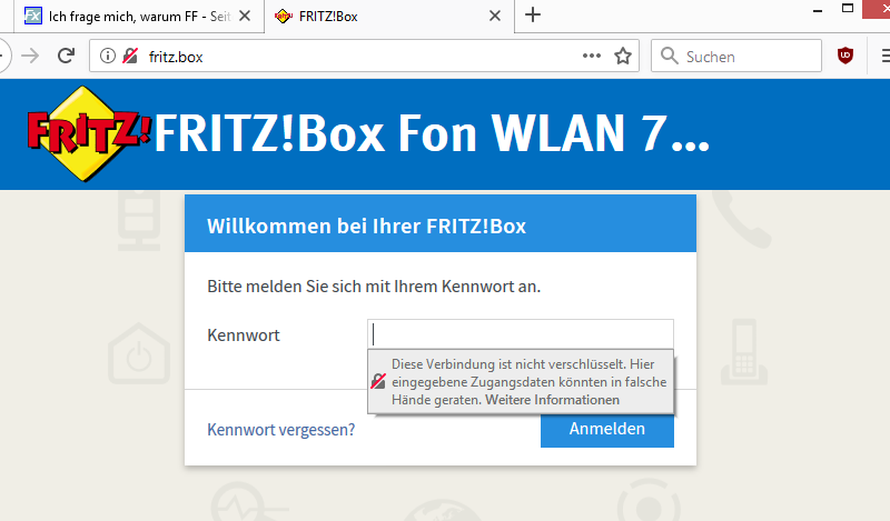 Wenn ich auf die Fritz Box gehen will, kommt eine Meldung, dass die Verbindung nicht verschlüsselt ist, dass eingegeben Zugangsdaten in falsche Hände kommen können. Was immer das auch heißt, das macht mir Sorge, weil es nicht mein PC ist, weil es nicht meine Box ist und ich nicht an die Daten rankomme. Ein Screenshot geht nicht, habe es 100-mal versucht, nur wenn ich das Programm starte, verschwindet diese Meldung, wieder!