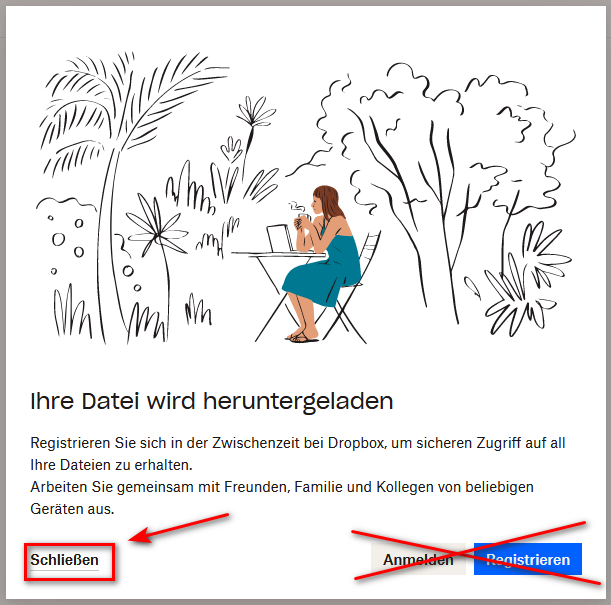 Hinweis: alle Dropbox-Nachfragen wegklicken und dann oben Links "Herunterladen"