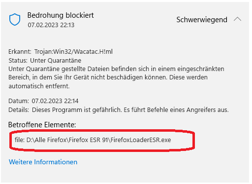 selbst wenn ich den cludbasierten Schutz auch noch zusätzlich deaktiviere wird es immer noch mokiert.