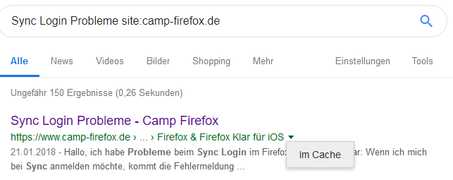 Sync Login Probleme site:camp-firefox.de und dann "Im Cache" aufrufe
