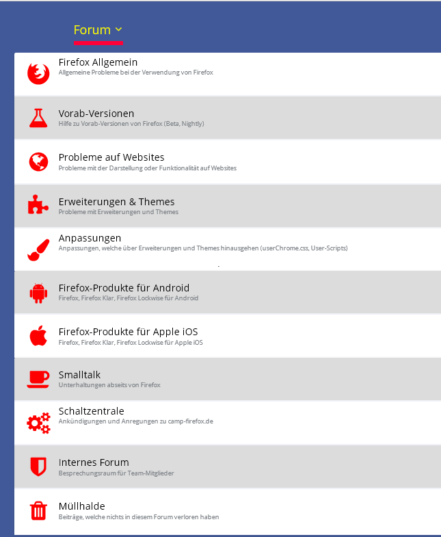 Am Inhalt hat sich nichts geändert. Und camp-firefox.de war schon immer eine privat betriebene Plattform. Dass dieser Schriftzug jetzt fehlt, ändert also nichts. Zumal das keine Anforderung ist, um ein Forum über Firefox zu betreiben. Das hatte ich damals von mir aus reingemacht.
