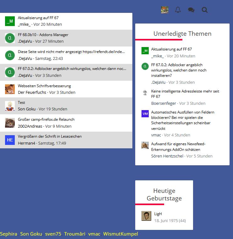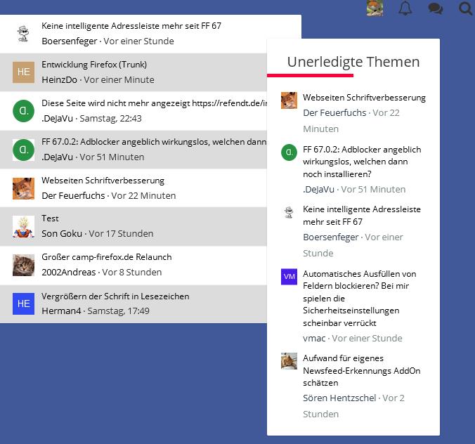 Um noch etwas mehr Fokus auf Themen zu legen, die noch nicht als erledigt markiert sind, erscheint auf den Forenseiten (außer in Themen, wo überhaupt keine Sidebar angezeigt wird) nun in der Sidebar rechts eine Box mit noch unerledigten Themen. Dabei werden auf der Foren-Startseite Themen aus allen Bereichen angezeigt. Betritt man jedoch ein bestimmtes Forum, zum Beispiel das Anpassungs-Forum, werden an der gleichen Stelle lediglich Themen aus dieser Forenkategorie angezeigt.