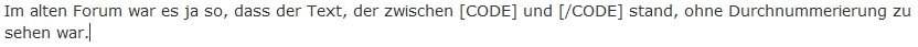 Eigentlich taucht die Nummerierung immer auf. Beim Kopieren des Codes mit dem Symbol rechts daneben wird die Nummerierung nicht mit kopiert.
