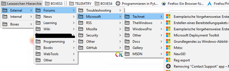 Nein, nein :D mein bisherige Struktur ist noch ausbaufähig. Ich suche nach idealen Kategorien, wie ich meine Lesezeichen am besten unterteilen kann. Meine alte Hierarchie ist noch eine reine Baustelle. Boxes enstprechen dann Links die keiner Kategorie angehören und irgendwann mal den entsprechenden Kategorie zugeorndet werden sollen. (s. Bild)