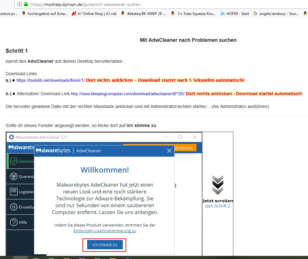 ● wenn nein dann dann starte AdwCleaner erneut mache erneut den Suchlauf und drücke dann darauf"). Danach wirst du aufgefordert deinen Rechner neu zu starten. Lasse dies zu. https://mozhelp.dynvpn.de/guide/public/u…wc-7/awc-06.png