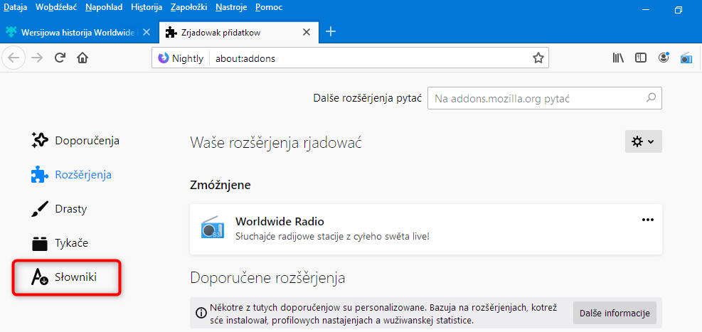 • Ich habe eine Frage zu Erweiterungen, die nicht öffentlich sind. Es sind meine eigenen, teils Konvertierungen von Chrome. DIe haben kein Symbol mehr im neuen Addon-Manager. In v67 wird das hier angezeigt für Wörterbücher, da ist nur ein anderes dic/aff drin.